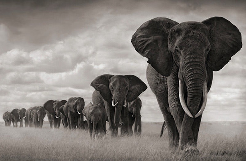 Stunning-Black-And-White-Photography-Of-Elephant-Herd-In-Africa